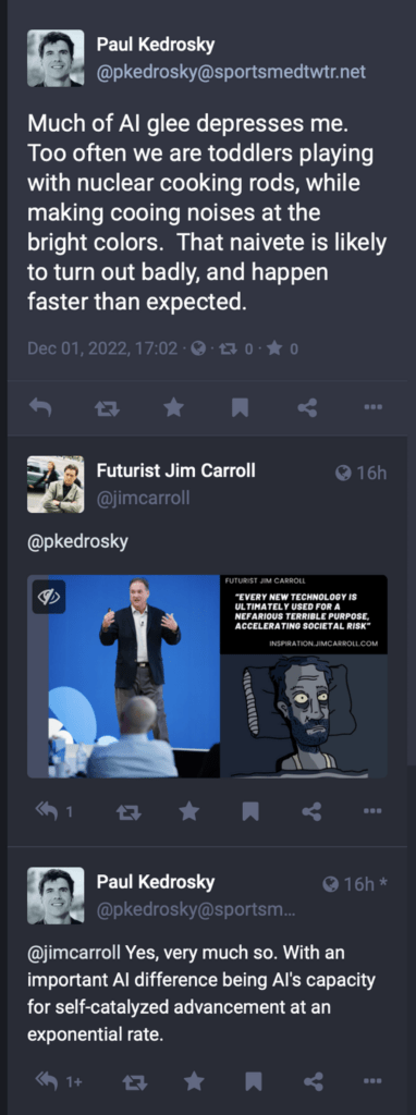 - [Mastodon. What's on Jim's mind? Check his feed!](https://futurist.info/@jimcarroll)