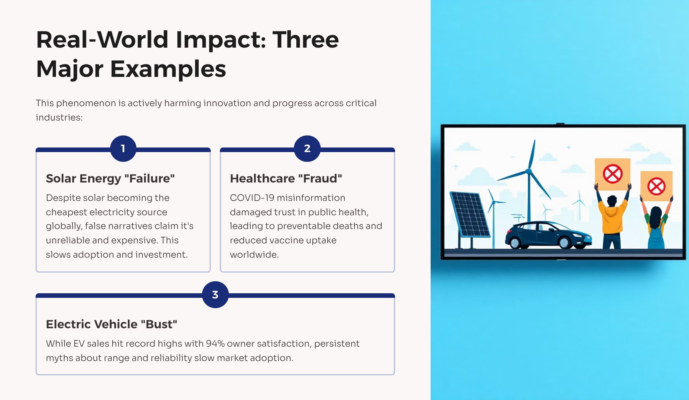 - **$2.8 trillion in lost market value** - that's the estimated annual impact of misinformation on companies. Just ask anyone in the solar industry how things are going.