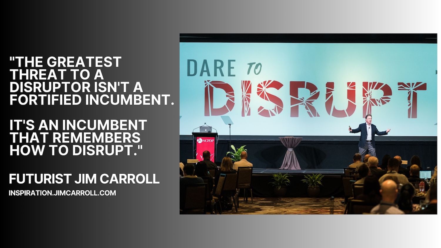 *"The greatest threat to a disruptor isn't a fortified incumbent. It's an incumbent that remembers how to disrupt."* - Futurist Jim Carroll