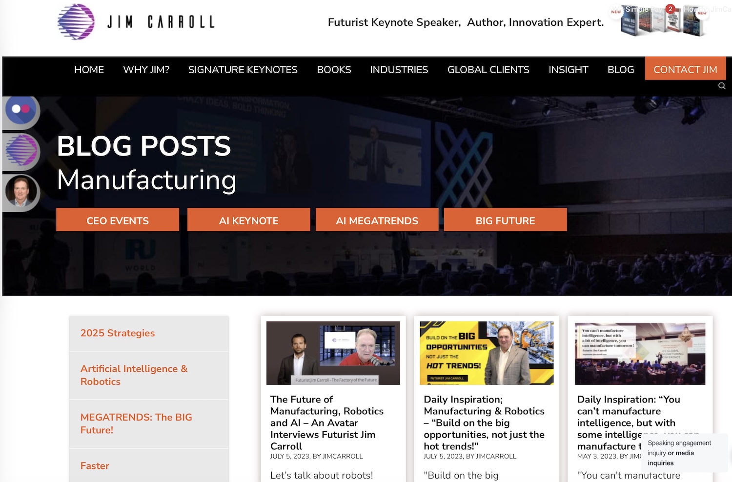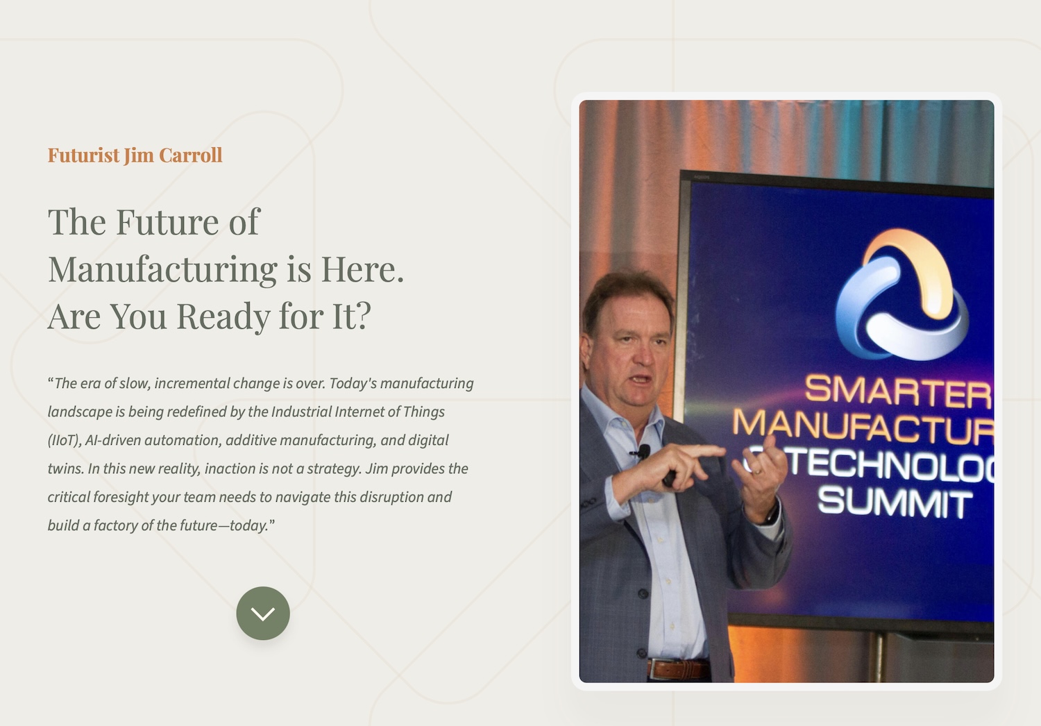What drew the attention of a few of their team was my manufacturing-specific keynote description. In an era of pap, generic content, relevance matters! It's over at [manufacturing.jimcarroll.com](https://manufacturing.jimcarroll.com).